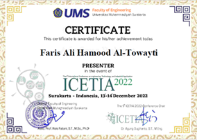 I was honored to be recognized as a presenter at the 9th ICETIA conference, where I shared valuable insights and research findings, contributing to the enriching academic discourse within the field of engineering.