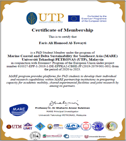 I have actively retained my membership in the Marine Coastal and Delta Sustainability for Southeast Asia (MARE) program, which is part of the Erasmus+ Project. My involvement has included active participation in workshops and contributing to collaborative research initiatives.